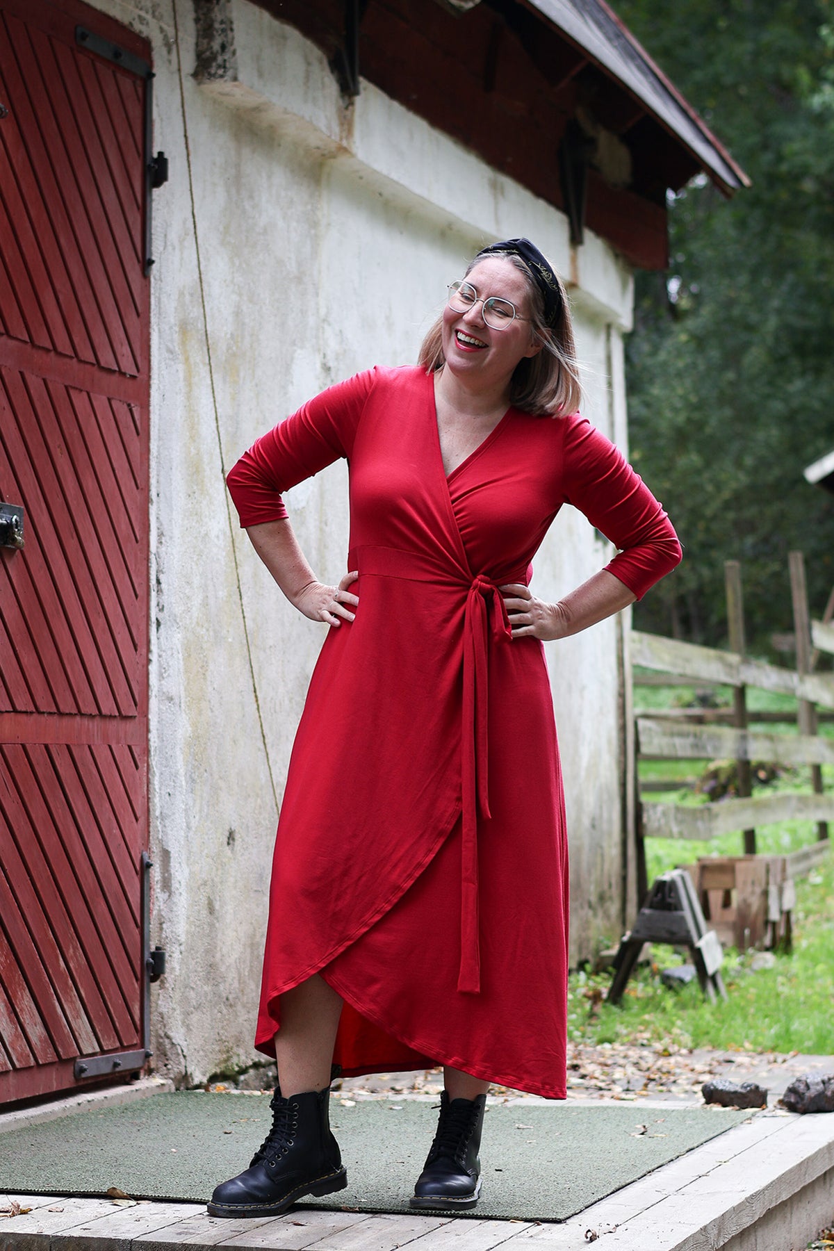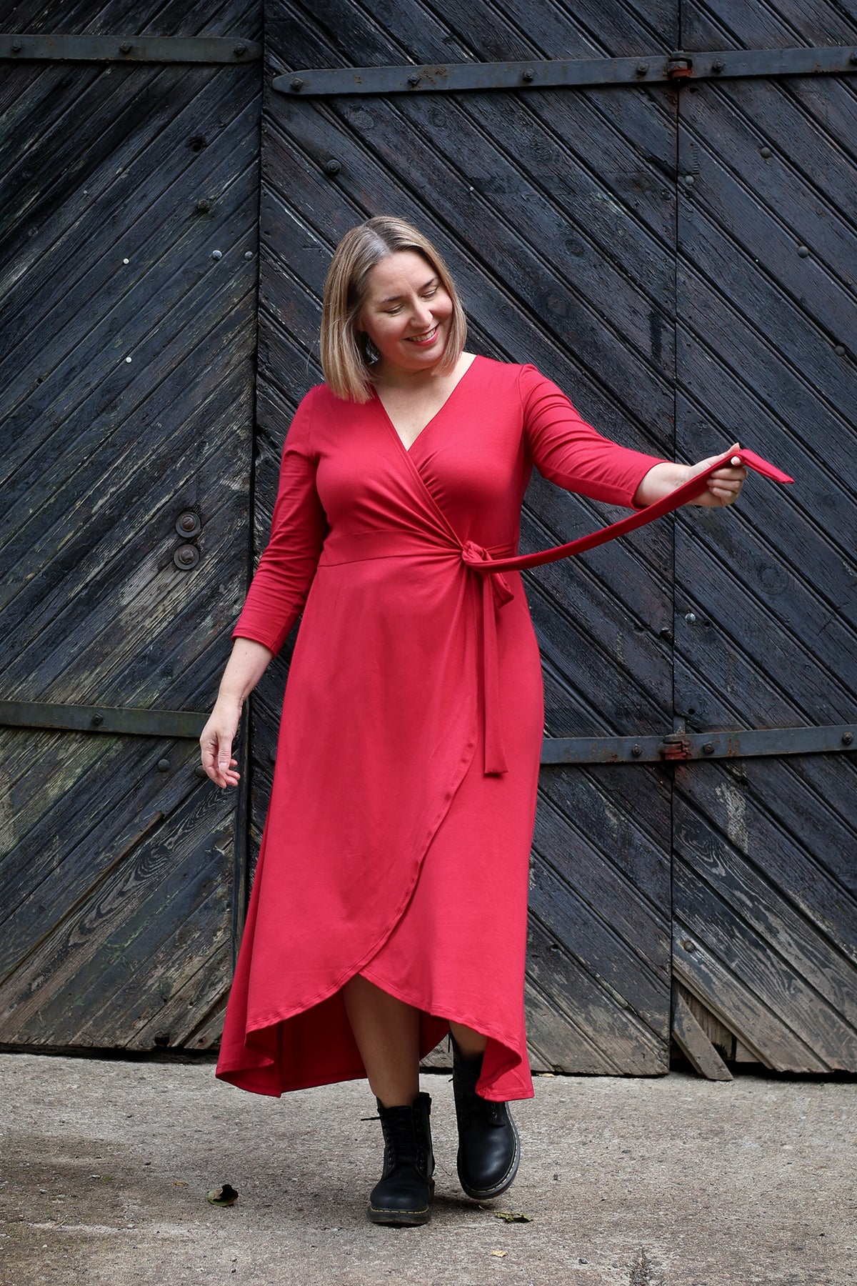 Tässä mielettömän kauniissa kietaisumekossa etukappaleen alapala on ommeltu sivusaumaan kiinni eli mekko aukeaa edestä, mutta ei kokonaan. Kaareva helma sekä leveä vyö rusetiksi solmittuna tuo mekkoon naisellisuutta ja hävittää mahdollista keskivartalo-ongelmaa ja mekko sopii erinomaisesti myös imettäville äideille. Kietaisumekossa on pitkät hihat, joka lisää käyttömukavuutta ja sopii siten moneen eri vuodenaikaankin!